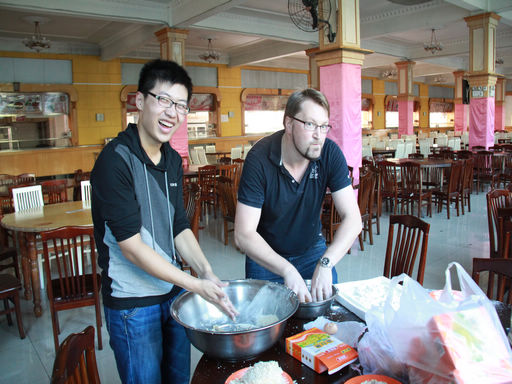 欧美性爱 有着浓厚的国际气氛,在2013年9月17日下午2时,欧美性爱 在欧美性爱 团委副书记闫海蓬老师的带领下,在真味饺子园二楼学子食堂大厅内成功举办了首届德国文化节开幕式——与Toni一起制作德国美食Schnitzel。活动邀请了来自德国德累斯顿的Toni Großmann和同学们一同制作德国美食Schnitzel。活动气氛融洽,同学们互动频繁积极交流,在品尝着德国美食的同时,畅谈留学德国及学习德语的相关话题。