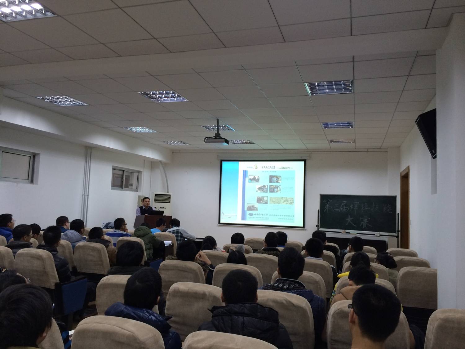 的三十多名同学,先进焊接与连接国家重点实验室的张建老师认真地向同学们讲解培训内容。