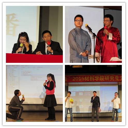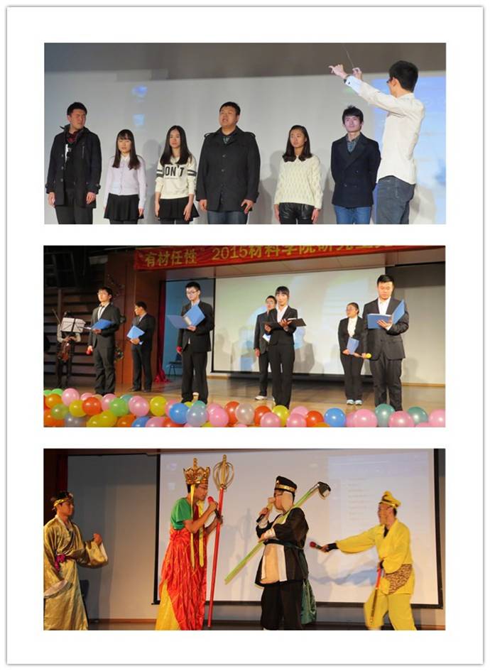 同学张扬的个性和火热的充满激情的青春。在晚会中间部分优美性感的舞蹈《诡异的舞林》,将晚会推向了高潮。整场晚会中,台上演员的表演精彩绝伦,台下的观众兴致勃勃,微信墙的互动让大家更加积极欢乐地参与到晚会中,中场的游戏为晚会增添了更多乐趣。晚会以材料物理的歌曲串烧结束,落下了完美的帷幕。晚会丰富了研究生了课余文化生活,搭建了研究生展示个性的舞台,促进了同学们之间的交流。精彩的节目像一个个跳动的美丽音符,谱成了一曲华丽的青春乐章,充分展现了动人的如火青春,将“有材任性”演绎的淋漓尽致。