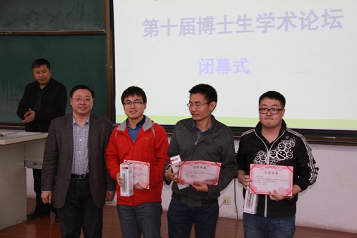 的各位领导、参加论坛的各位评审专家、与会的博士生同学以及组委会的各位工作人员表示衷心的感谢。为激励优秀,大会还为各位获得“优秀学术报告”奖的博士生举行了隆重的颁奖仪式。之后,各分会场主席对各会场的工作进行了精彩点评。王金忠教授为学生论文发表和论坛学生报告提交提出了建议;朱景川教授指出博士生研究应该注重实验和基础理论的有机结合,并建议论坛的报告形式应各课题组打乱混合,这样有利于跨学科交流;田艳红教授充分强调了导师指导的重要性,并对朱景川教授的建议表示赞同;孔凡涛教授对第三分论坛的交叉学科论坛取得的效果给予了高度肯定;姜龙涛教授对学生们的工作给予了充分肯定,并鼓励博士生学习先进研究方法和分析手段。