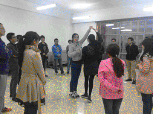 团队合作活动主要是素质拓展活动,开展竞赛性游戏,在蔬菜水果蹲和踩气球游戏和学跳交际舞活动中,研究生同学们自由组合,既竞争又合作,各个党支部的所有的党员参与其中。