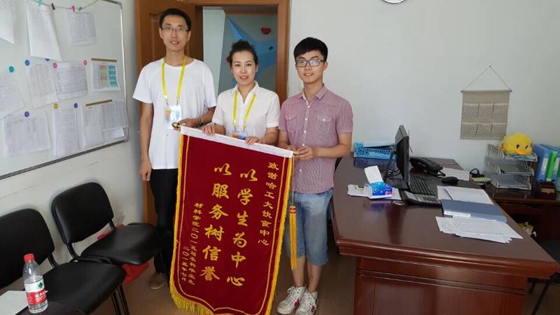 的大四毕业生为了感谢母校、感谢母校那些默默付出的辛勤工作者,他们分别为公寓中心、饮食服务中心、校医院制作了锦旗,以此表达内心的感谢之情。大学四年,公寓早已成为学生心目中的“家”,正是公寓中心叔叔阿姨们的贴心的服务,才使得公寓如家庭般温暖。俗话说民以食为天,健康的饮食,才是学生们进行创造的基础。饮食中心始终以学生为中心,以服务树信誉,为广大师生提供健康、美味的饮食,使得学生有一个健康的餐饮环境。校医院为我们广大师生提供了便利的就医环境,医生始终待患如亲关怀备至,真情体现亲如一家,正是白衣天使的辛勤努力,才使得师生们有一个健康体魄,才能以更健康的面貌投身科研、学习。