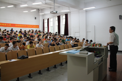 光电信息科学与工程系主任王金忠教授为同学们进行讲座。本次讲座讲述了光电信息科学与相关产业发展历程。王老师精神抖擞,讲课循循善诱。