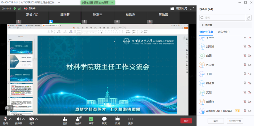 会上,各年级辅导员依次汇报学生综合表现与学业状况、解读班主任管理制度与考核办法、剖析学生重点问题并部署寒假学业帮扶、春季学期重点工作及专业分流、研究生培养等相关任务,与会人员根据各年级具体情况,围绕学生学业帮辅、学风建设、就业指导、班级管理、人才培养等工作深入交流、凝聚共识。最后,辅导员与各位班主任围绕重点工作开展、学生培养展开了充分的沟通。